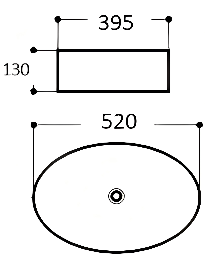A luxurious oval vessel basin crafted in deep black marble with elegant white veining. Its smooth polished surface and centred drain create a refined, sculptural look suited to premium contemporary bathrooms. Measuring 520 mm wide, 395 mm front‑to‑back, and 130 mm high, the basin offers a striking presence while maintaining practical everyday usability. The combination of natural stone aesthetics and modern form makes it an ideal statement piece for sophisticated interiors.